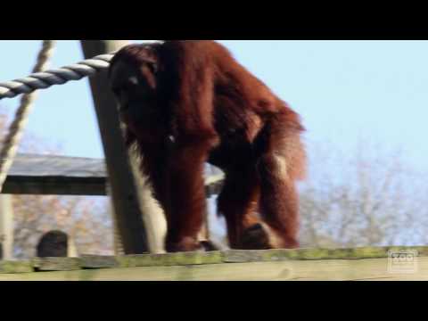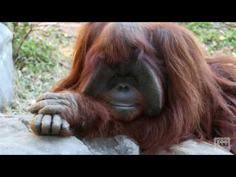 Orangutans are the only apes that do not live in large social groups. This behavior is associated with their diet, primarily of fruit, as a large social or family group would deplete the usually sources of fruit in any given area. When there is an abundance of food, such as a concentrated area of fruiting trees, females and juveniles may gather into social groups to take advantage of the resource. Orangutans display remarkable cognitive skills. In the wild, a mature, experienced orangutan will have a seasonally adjusted map of their area committed to memory to use as a guide to specific trees that should be fruiting at various times. Orangutans are adept at puzzles, situations, or challenges that involve recognition and matching of objects (including people), sequencing, or memorization. They also are known for their use of simple tools. Most people are familiar with studies that show chimpanzees using tools such as sticks to find termites for food. Recent studies have also shown that orangutans occasionally use tools when foraging for food. When working with the orangutans, the keepers use positive reinforcement to reinforce completed tasks (i.e. fruit or biscuits). The orangutans at Zoo Atlanta currently use touch-screen computer monitors to participate voluntarily in cognitive research. Keepers work with orangutans in a protected contact environment meaning we never share the same space at the same time. Orangutans are playful, gentle apes, but they are very strong and could unintentionally injure a human. We shift them from their night areas to their outdoor habitats once these areas are prepped and secure.