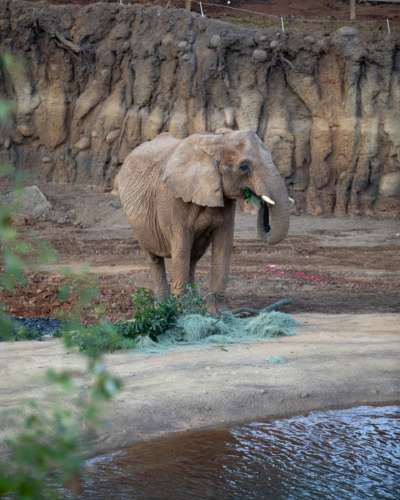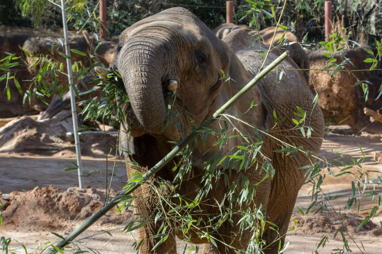 Browse Team members identify tree species to ensure they are not toxic. Large branches and limbs are provided to elephants, primates, goats, and sheep. We have partnerships with electric companies and other partners that communicate with our Browse Team so they can collect the trimmed branches. Additionally, they collect from park restoration efforts as they remove invasive species. During the growing part of the year, browse is frozen for use through the winter. When needed, browse is even shipped.