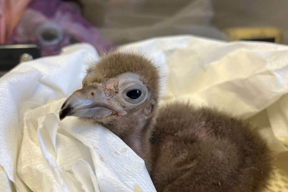Fostering a hooded vulture chick