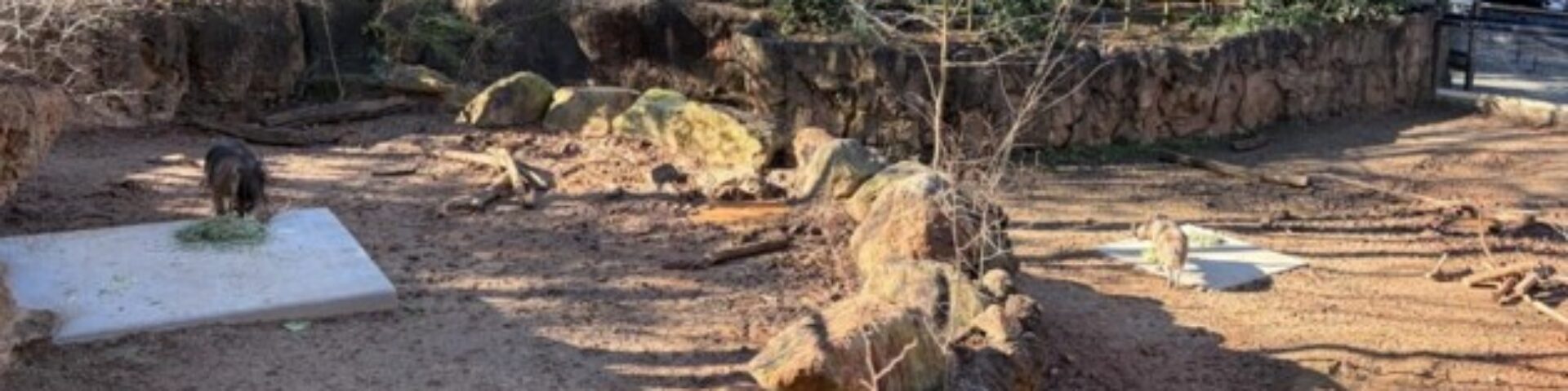 Renovations being made in our warthog habitat include two concrete feeding pads (pictured) and shelters that will cover said feeding pads (soon to come). These shelters will provide shade from the sun, shelter from the rain, as well as more heating/cooling options to allow the warthogs a more comfortable experience being on habitat during Georgia’s hot summers and cooler winters. Animal staff will continue to give animals access opportunities to behind-the-scenes spaces at extreme temperatures.