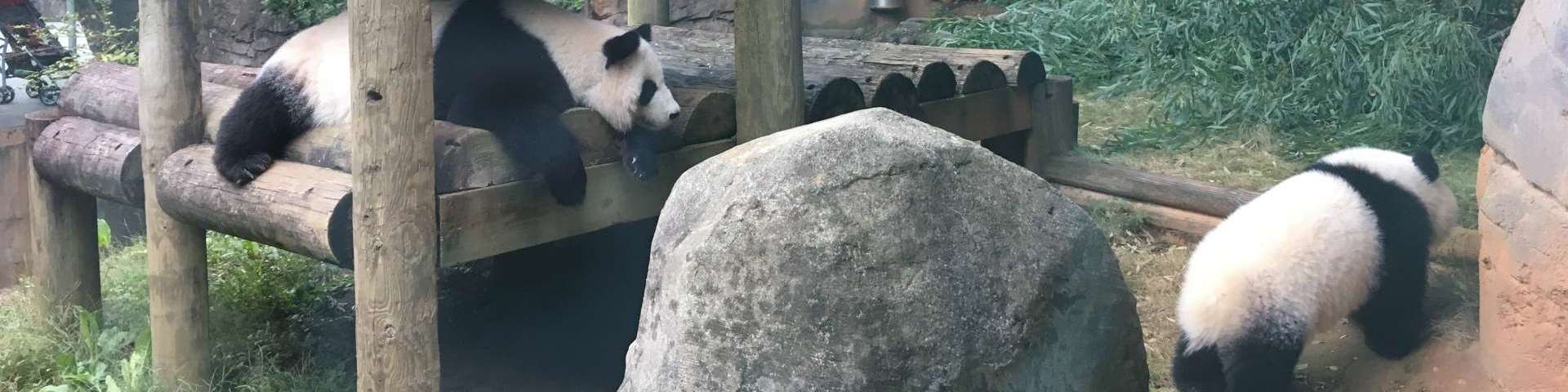 We are all excited about the autumn weather finally arriving to Atlanta. Well, almost arriving. It’s not 80 degrees anymore! We have been taking advantage of these cooler mornings by getting the pandas into the outdoor habitats as early as possible. Due to their incredibly thick fur, the bears are not very tolerant of hot temperatures, which is why they have been enjoying the air-conditioned dayrooms all summer. The cubs were originally wary of venturing back outside, but lately they seem to really be enjoying exploring every inch of the habitat. We can’t help but laugh as we watch them vie for position on the climbing structure and try to attack the innocent small tree nearby. I can’t wait to watch them discover the falling leaves of autumn, and dare I say it? Maybe even some snow this winter? This girl from the north can only hope!