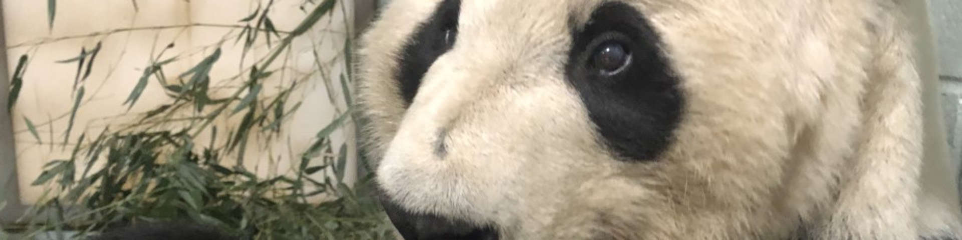 We are approaching the most wonderful time of the year here in PandaLand… bamboo shoot season! Every spring, bamboo stands produce what are called shoots. These are the fresh, new sprouts of the plant that emerge from the ground before they harden into the big, tough culms we typically think of when we think of bamboo. When they are beginning to grow, they are very soft and densely packed with nutrients. During shoot season, pandas in the wild will almost exclusively eat shoots. Since the shoots are softer than mature bamboo culms, they require less energy to eat, and since they do contain more nutrients, they are a valuable resource to foraging pandas. For these reasons, our pandas also love them when they are available. We are very fortunate to have many amazing bamboo donors around Atlanta who ensure we always have an ample supply of bamboo to feed the bears. This means we are able to mimic what a giant panda’s natural diet trends would be in the wild by feeding exclusively shoots while they are in season. There are not many shoots out there yet, so we are not yet to the point of actively harvesting them for the pandas. However, while walking around the building over the weekend, we found some small shoots growing near the panda habitats. We took advantage of this and cut a couple to give to each of the pandas (including Jackie!) as a tasty treat. Each of the pandas made sure not to leave a single morsel of their shoots!