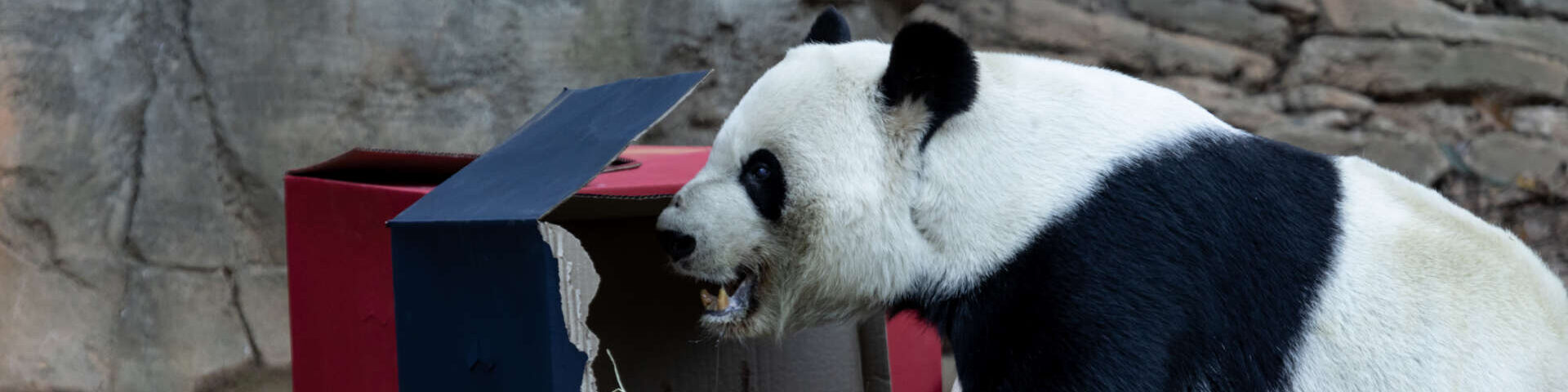 The giant panda entered his outdoor habitat on December 14, 2023, to find two identical boxes painted with team logos, and made his pick. 2023 is Yang Yang’s eighth year as Atlanta’s panda prognosticator in advance of the Chick-fil-A Peach Bowl, which will be played at Noon EST on December 30 at Mercedes-Benz Stadium.