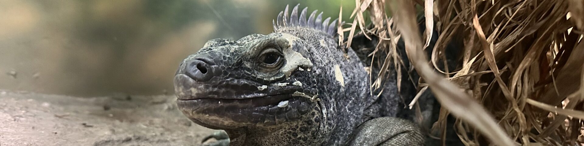 Enter Grandma the Jamaican iguana. Affectionally named due to her age, she currently sits at 33 years old, while wild Jamaican iguanas have estimated lifespans of about 20 years. She moves slower than the other iguanas in our department, is not adept at climbing, and requires more assistance than usual with shedding her skin. She also has not been in a public habitat for a while. With her limitations in mind, we set out to transform the anaconda space into something suitable for an elderly iguana.