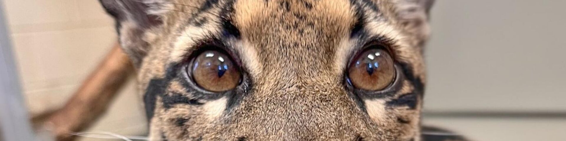 Native to forests in Asia, including the Himalayan foothills, parts of northern India and Bhutan, into southeast Asia and southern China, the species is classified as Vulnerable by the International Union for Conservation of Nature (IUCN). Despite limited research, clouded leopard populations are believed to be declining in the wild. Their most pressing challenges are habitat loss due to deforestation, the illegal wildlife trade, and injuries and deaths from poachers’ snares.